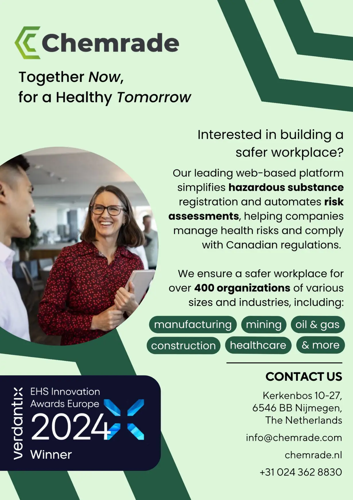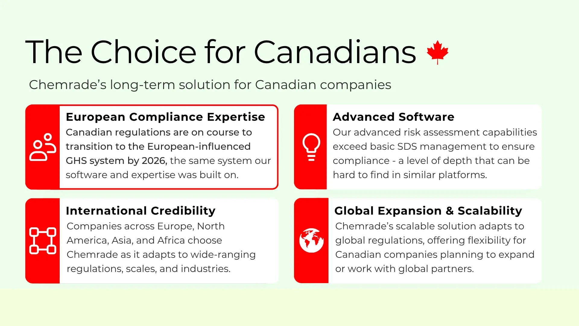 Chemrade was unknown in Canada. Despite a strong track record across Europe, North America, Asia, and Africa, the Canadian market had no existing awareness of the brand, no localized messaging, and no relationships to build from. Canadian OHS regulations differ meaningfully from European standards, which meant generic materials wouldn't land. Enterprise buyers needed to see that Chemrade understood their regulatory environment specifically – not just that they had a good product. The challenge was building credibility and pipeline simultaneously, from the ground up, within a single contract period.